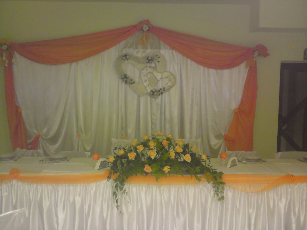 W skład dekoracji wchodzi przystojenie stołu prezydialnego, udekorowanie ściany stojącej za parą młodą, dekorację sufitu i korytarza wraz z przygotowaniem ozdobnej bramy weselnej.